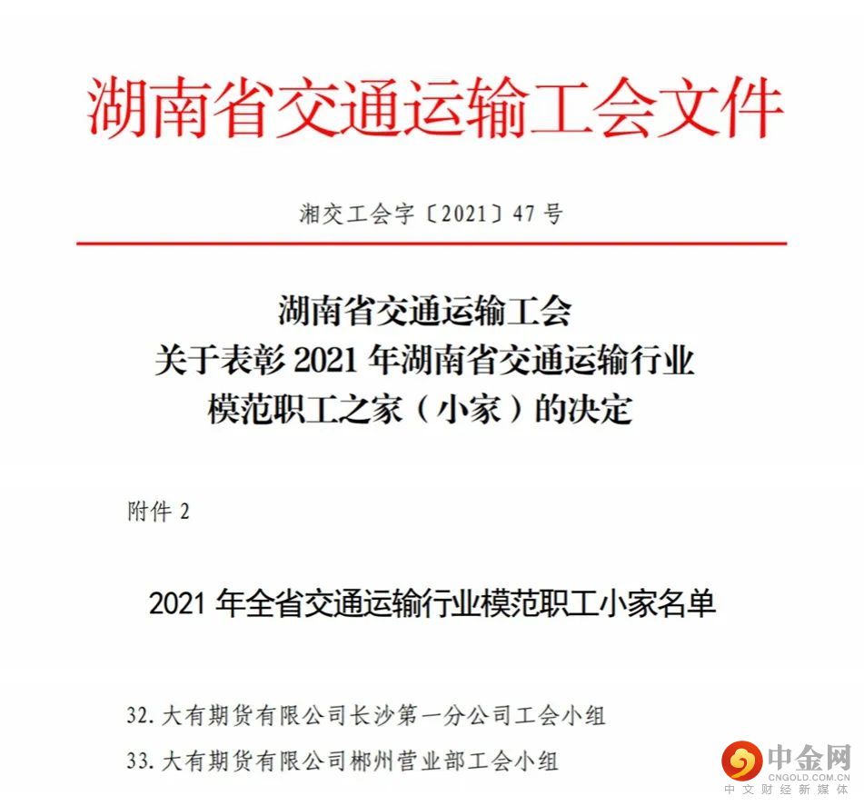 11月22日,湖南省交通运输工会发布了《关于表彰 2021 年湖南省交通运输行业模范职工之家(小家)的决定》,长沙第一分公司、郴州营业部工会小组同获“湖南省交通运输行业模范职工小家”荣誉称号。