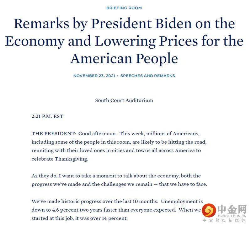 当地时间11月23日,在美国原油价格和通胀数据不断上升之际,美国总统拜登在白宫就美国经济及油价发表讲话。