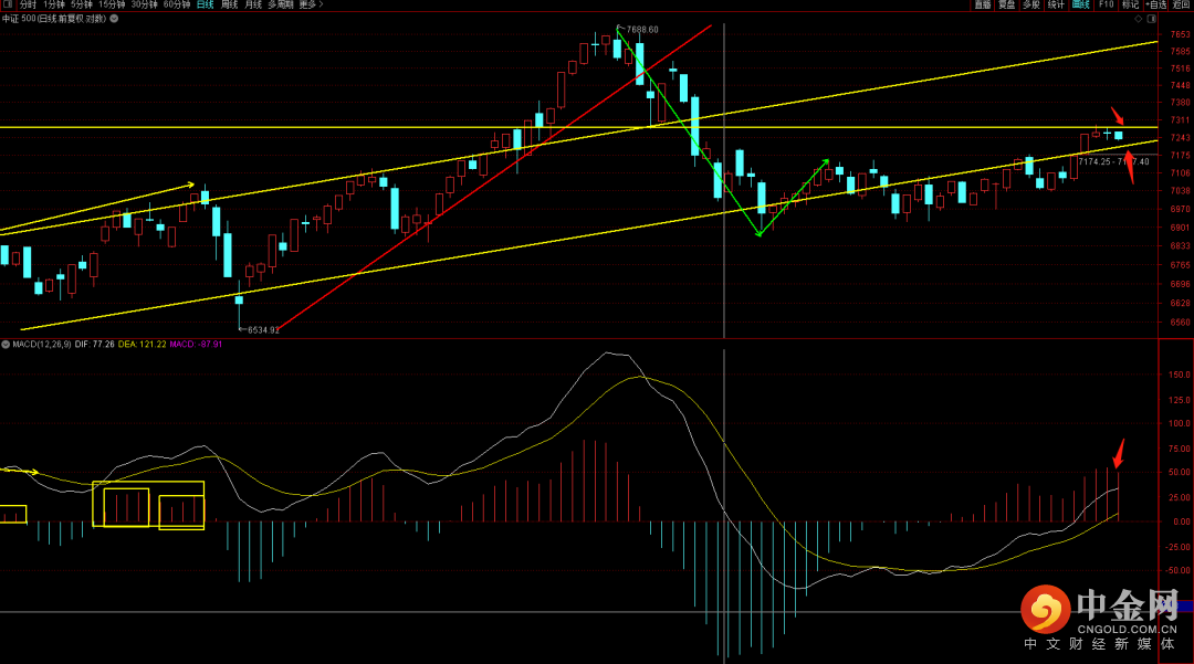 中证500短期压制明显,关注夹角的变盘方向,在macd没有出现再次的扩张红柱之前大概率维持调整走势,注意把控好高抛节奏点。