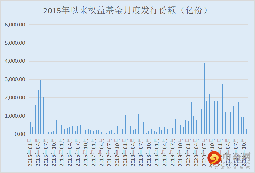 继续往前看,今年3月份至8月份,市场每月新发权益基金份额均超千亿,年初最高峰时,全市场一个月新发行基金规模高达5100亿份,是本月新发基金的十倍不止。