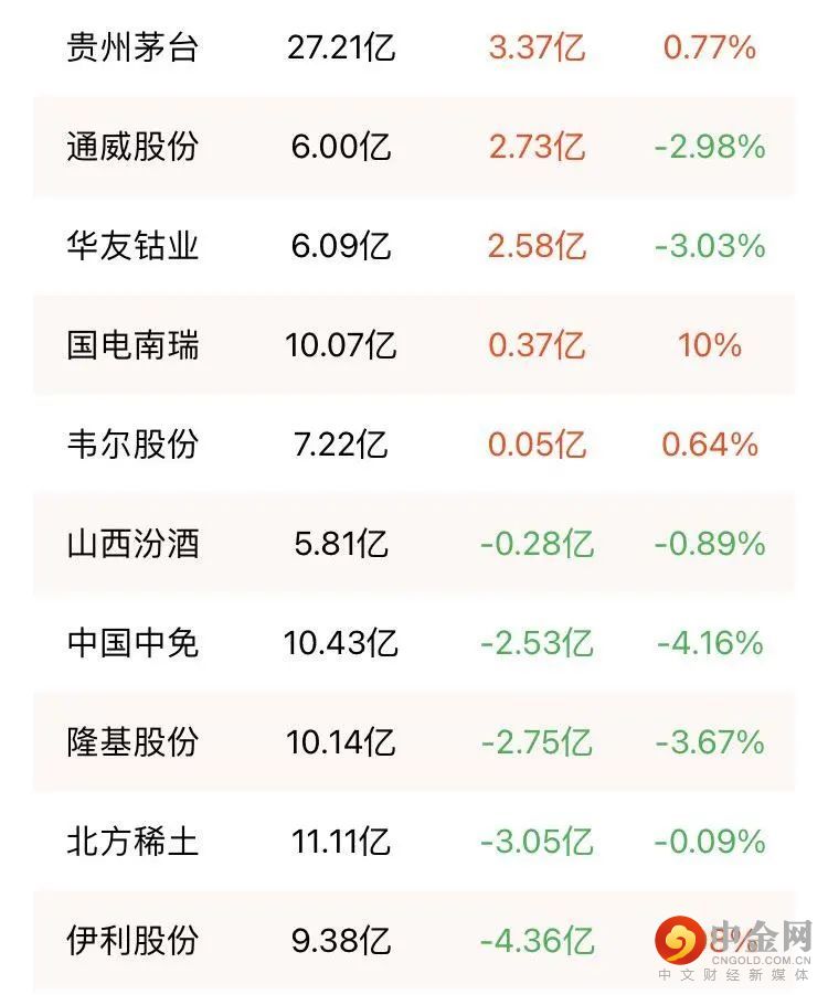 8、北向资金11月25日净买入11.72亿元,为连续5日净买入。其中,沪股通净卖出8.66亿元,深股通净买入20.37亿元。贵州茅台、赣锋锂业、通威股份分别净买入3.37亿元、2.81亿元、2.73亿元。伊利股份净卖出额居首,金额为4.36亿元。