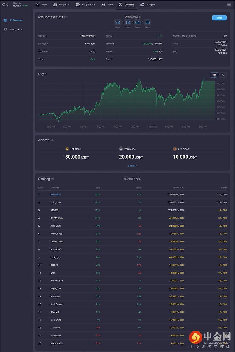 为庆祝竞赛模块的发布,PrimeXBT 还推出了盛大交易竞赛,奖池为 100,000 美元,将由十位表现最佳的交易者分享。