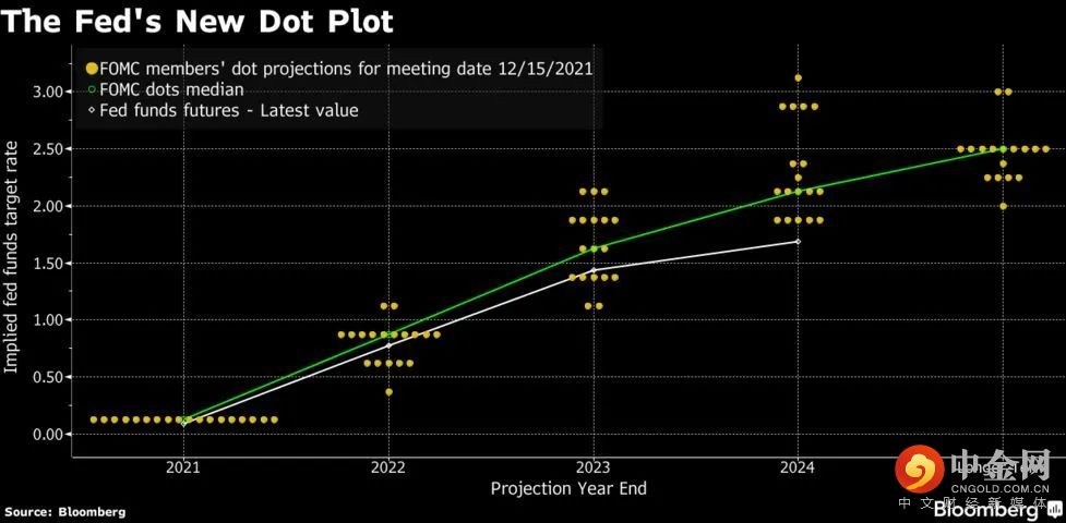 点阵图还显示FOMC成员预期2022年和2023年都加息3次。
