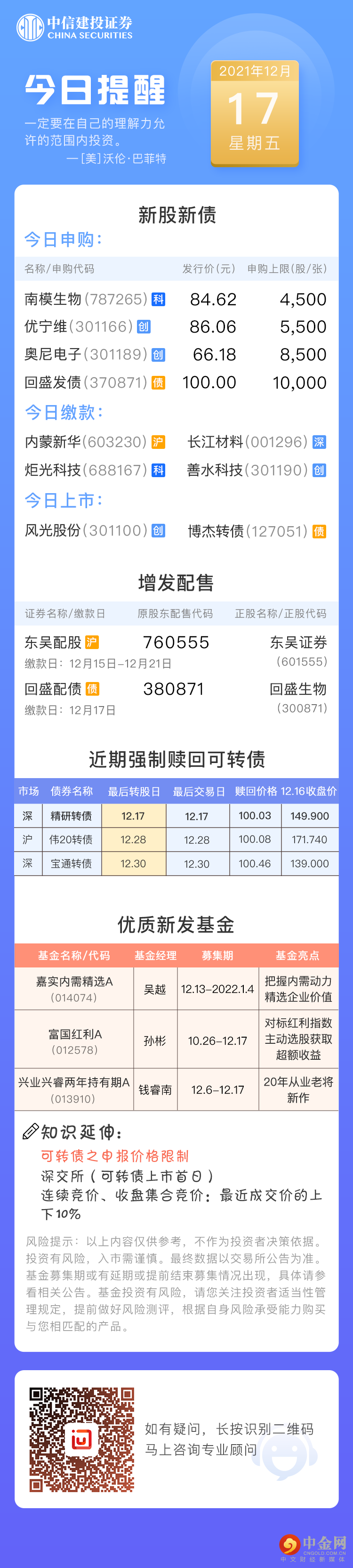 今日投资提醒(12月17日)