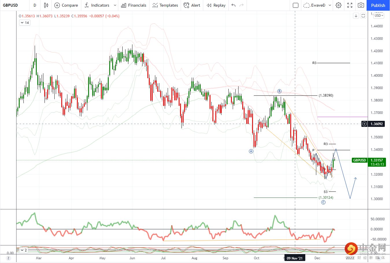 中性设置,但收盘高于 1.3293 21 DMA 目标是 1.3417 上波利