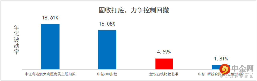 慧悦业绩比较基准:中债新综合财富(1年以下)指数收益率×37.5% +中债新综合财富(1-3年)指数收益率×37.5%+中证粤港澳大湾区发展主题指数×25%。年化波动率:即指定区间内收益率标准差的年化值。年化波动率数值越大,代表回报远离过去平均数值,故波动风险越高;相反,年化波动率数值越小,波动风险亦较小。历史表现不代表未来,市场有风险,投资需谨慎。