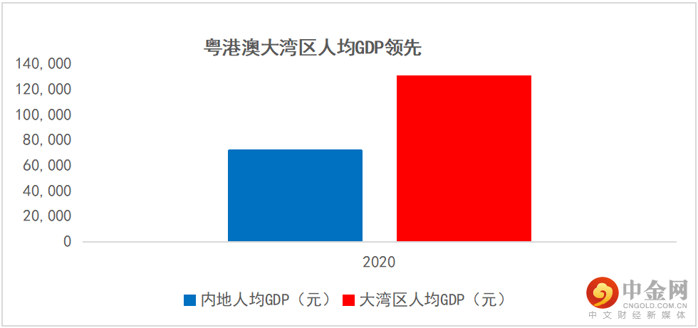 2020年大湾区人均GDP约13万元,相当于内地人均水平的1.8倍。