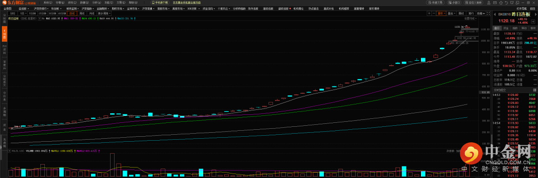(连板指数加速上涨。图片来源于东方财富。)