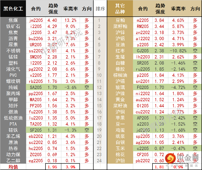 中期商品趋势榜 | 多头趋势强,但需关注假期波动(1224)