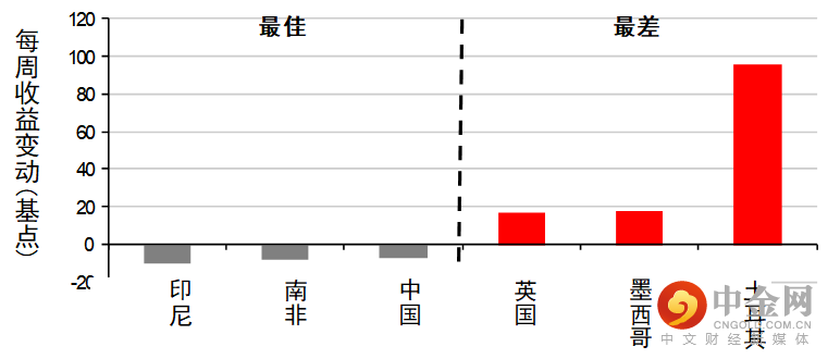欧洲政府债券表现落后于美国国库券,因欧洲央行官员发表一些鹰派言论,低流动性亦加深了跌势。德国十年期政府债券息率本周高收10个基点至-0.25%,而同年期英国政府债券息率升16个基点至0.92%。