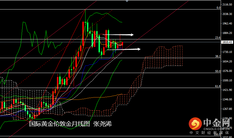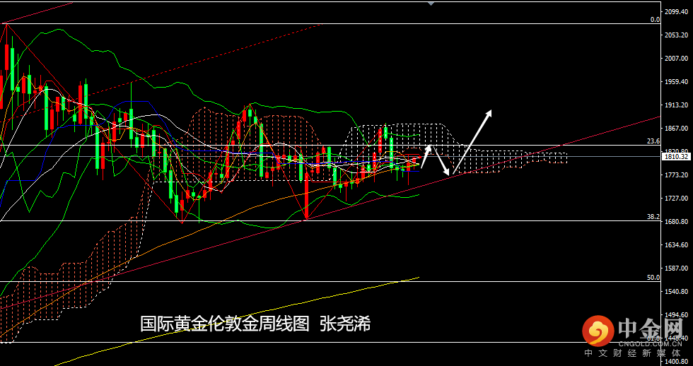 走势上,金价自周初开于1799.17美元/盎司,先行走低于周二触底当周低点1784.92美元并反弹,于周四触及当周高点1810.45美元,终收于1807.74美元,涨幅0.48%。