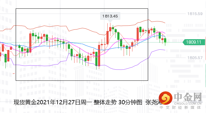 走势上,金价自亚市早盘开于1807.34美元/盎司,在上周尾的探底回升力度下先行反弹触及1812美元,不过遭遇技术压力影响又转震荡回落,且延续至美盘开盘触及日内低点1803.07美元,美盘也就此再度开启反弹,因奥密克戎变种感染病例增加给全球经济增长带来新的风险,盖过了美元走强带来的压力。推动金价触及日内高点1813.08美元,不过道指等的持续走强打压,终收于1811.71美元,日振幅10.01美元,收涨4.37美元,涨幅0.24%。