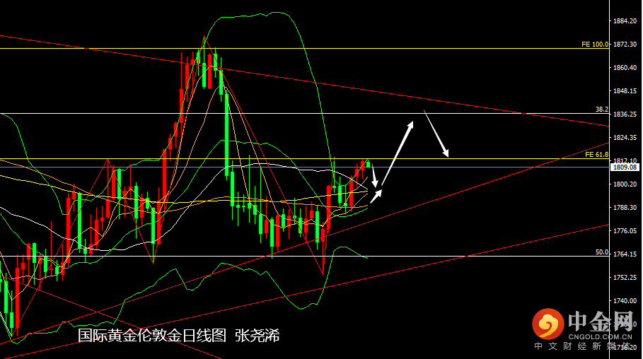 国际黄金:下方关注1804美元附近支撑,以及1799美元支撑触及可多;上方关注 以及1820美元阻力可空;