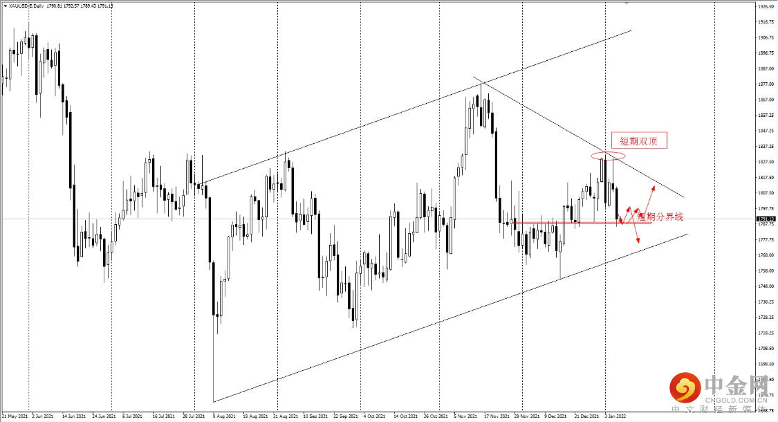 近期美联储一直以“鹰派”示人,就在昨天周四,圣路易斯联储主席布拉德,在一个活动上表示:未来应对当前过高的通胀,美联储可能在三月份开始加息,虽然缩表。这突如其来的言论,让黄金市场着实吓了一跳,本来正在上扬的黄金,在言论过后直接转跌,刷新去年12月22日以来低点至1786.51美元/盎司,黄金跌幅超1%.