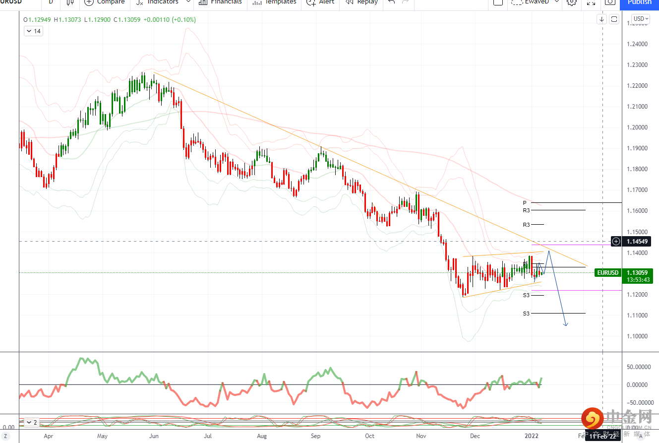 阻力位@21 日均线 1.1306,关键阻力位@55 日均线@1.1374