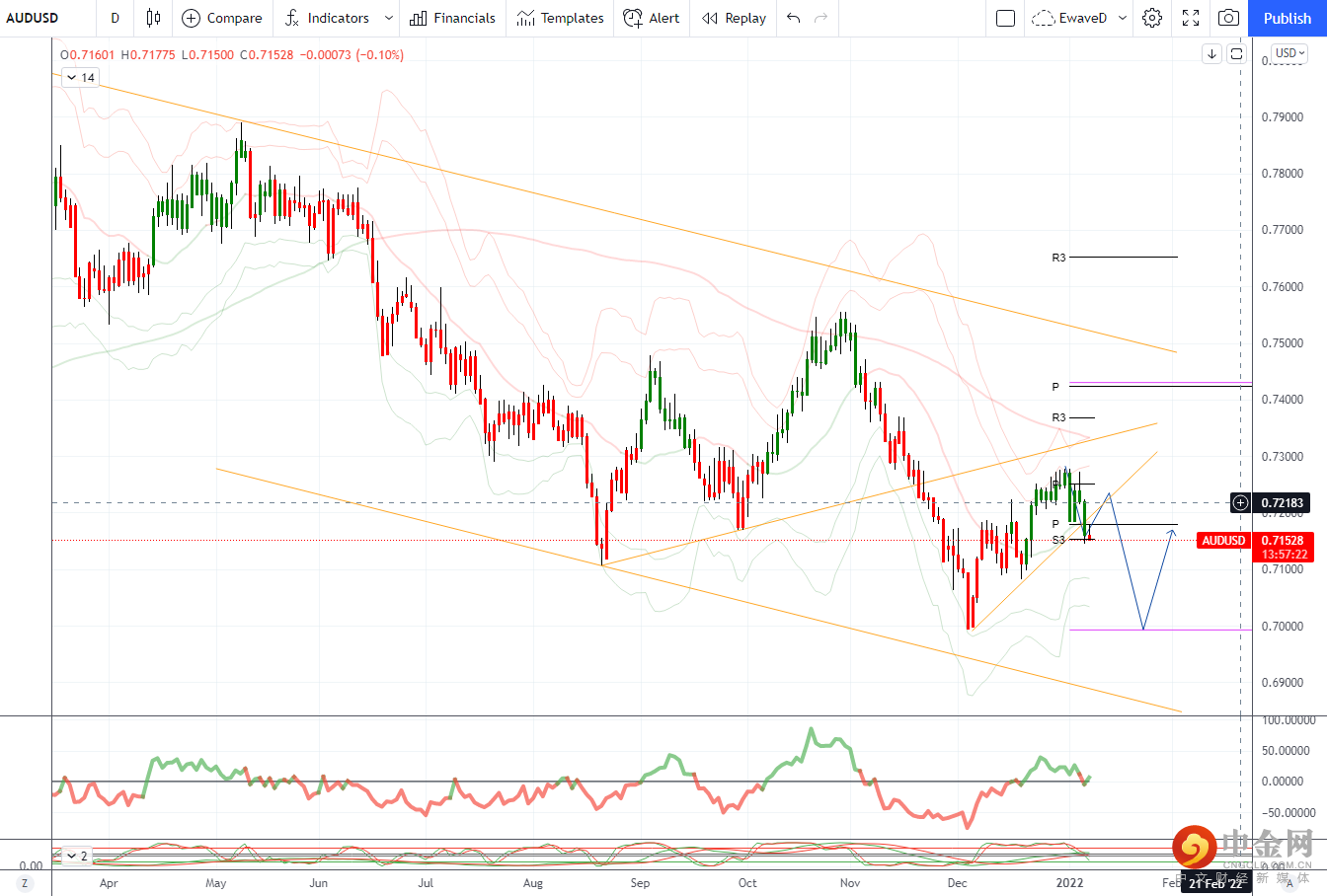 阻力位于 21 日均线 0.7193 和 10 日均线 0.7222