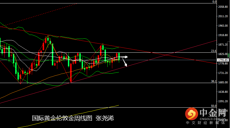 周四则延续回落力度,触及1790美元下方并收线,周五则在失业率利空的压力下进一步走低触及当周低点1782.45美元,不过非农就业数据低于预期及前值展现利好,美指大跌收阴,再加上部分技术买盘支撑,而有所止跌反弹,终收于1795.85美元,周振幅49.15美元,收跌33.91美元,跌幅1.9%。