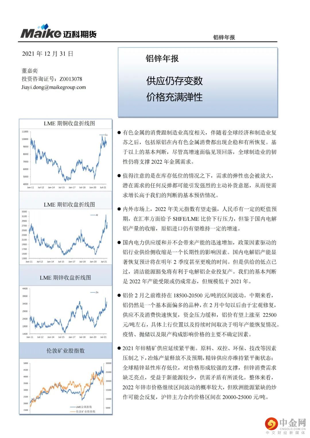 【迈科期货2022年铝锌年报】供应仍存变数,价格充满弹性