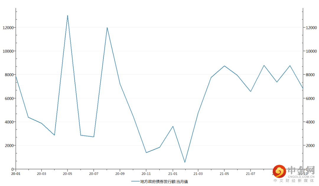 图2-2:2020-2021年国内地方债发行当月值(亿元)