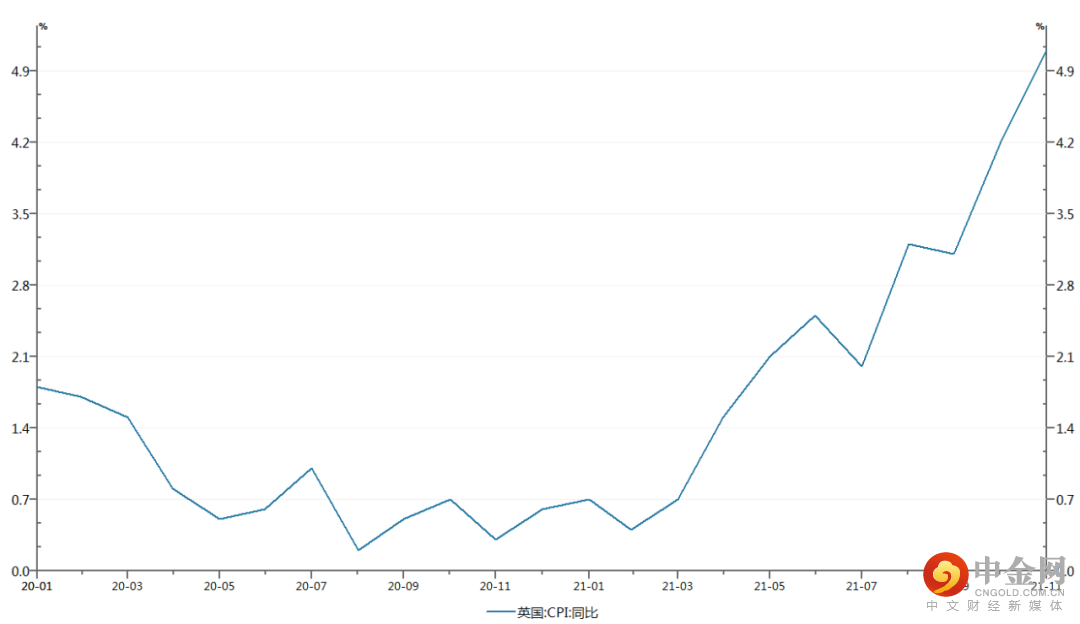 造成这一情况的主要原因同样在于英国通胀数据高企,并且英国央行认为通胀可能会持续一段时间。2021年英国CPI同比增速和美国一样出现大幅上涨,从年初不到1%的通缩压力区,一路单边上涨不回头地来到了11月的5.1%,达到2011年9月以来的最高水平。显然,如果说10月份4.2%的CPI增速以及美联储对“通胀暂时论”的死撑还能够给予英国央行以一定的安慰,令其勉强维持不加息的状况,那么11月份超过5%的通胀和美联储“转鹰”让英国央行终于可以如抛掉烫手山芋般火急火燎地落地加息。