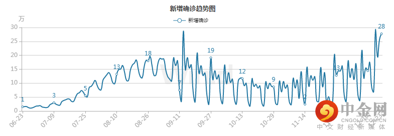 图1-2:2021年下半年美国日新增确诊病例趋势(万人)