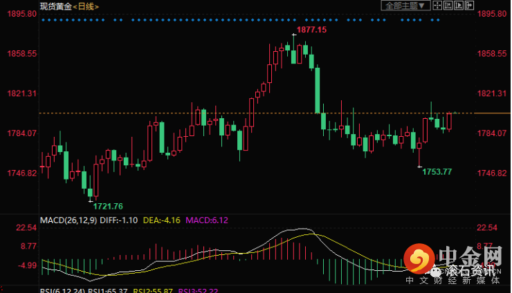 持续下滑,金价迎来喘息之间,但黄金的避险买需也有所减弱。如果金价短线能站稳1800关口,或许有进一步的上涨空间,若跌落1800下方,则金价盘整的机会更大。