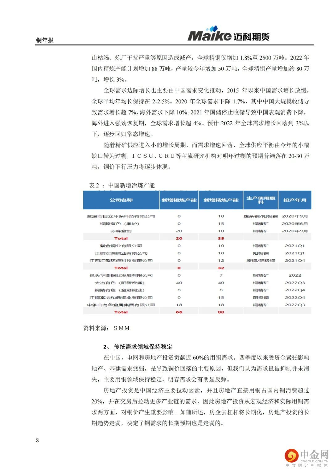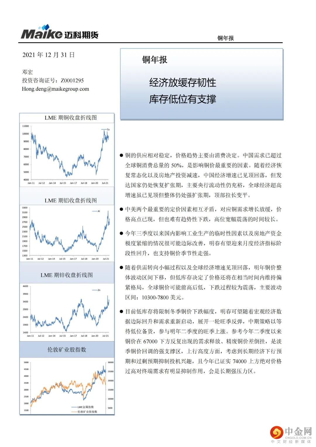【迈科期货2022年铜年报】经济放缓存韧性,库存低位有支撑