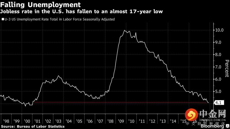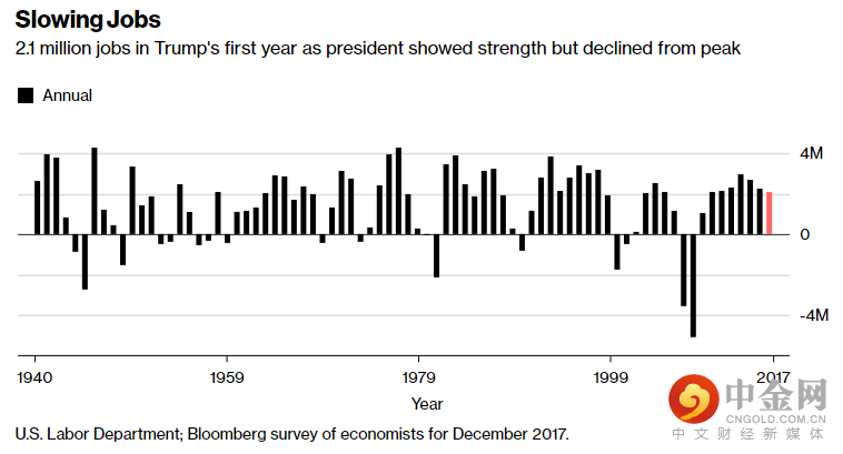 12月非农就业报告五大看点? · 稳步改善?美国去年1-11月平均每月新增非农就业人数为17.4万人,经济学家预计12月新增就业人数将略高于这一数字。2017年前11个月,美国新增非农就业人数有七次超过20万人,只有两次不足10万人,一次是在暴风雪袭击东海岸的3月份,另一次是在飓风袭击美国南部的9月份。2010年以来,美国月度非农就业人数从未出现过负增长。?· 2017年全年新增非农就业情况?美国2017年新增非农就业人数料将在200万人左右,可能至少是2012年以来人数最少的一年,但也可能是连续第七年新增非农就业人数超过200万,与20世纪90年代连续超过这一数字的时间一样长。去年相对稳定的就业增长令人印象深刻,因为许多经济学家曾预计去年新增非农就业人数将放缓,因为雇主招聘员工的难度进一步加大。这也意味着美国经济已经企稳,并可能有进一步扩张的空间。?· 失业率以低位收官