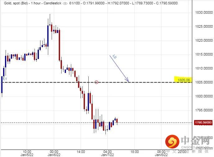 黄金价格短期间能否在$1,800美元的上方运行,抑或会备受沽压甚或跌穿$1,780美元水平,要视乎今晚稍后时间美国发布的12月非农就业人数数据结果,现时平均预期是40万,差不多上月21万的一倍,要是数据结果跟预期一样比上次显著造好的话,投资者会认定美国就业市场已踏入联储局积极加息,以及需要显著收紧政策的门坎,买入黄金的风险意欲应该会备受打击,应会对金价构成跌穿$1,780美元的压力。