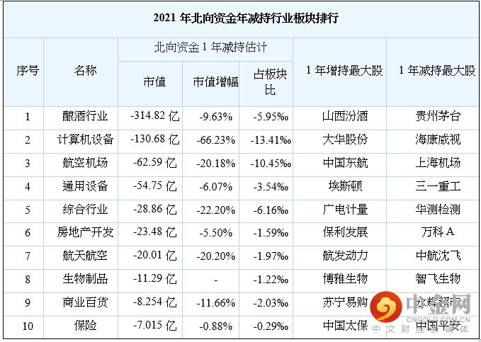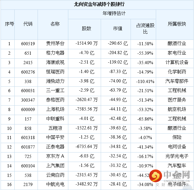 2021年有近1000只股票被北向资金减仓。2021年北向资金共计减仓989只股票,对其中21只股票的减仓股数超过1亿股。减仓股数最多的京东方A被减仓6.78亿股,格力电器、中联重科被分别减仓4.66股、4.03亿股。