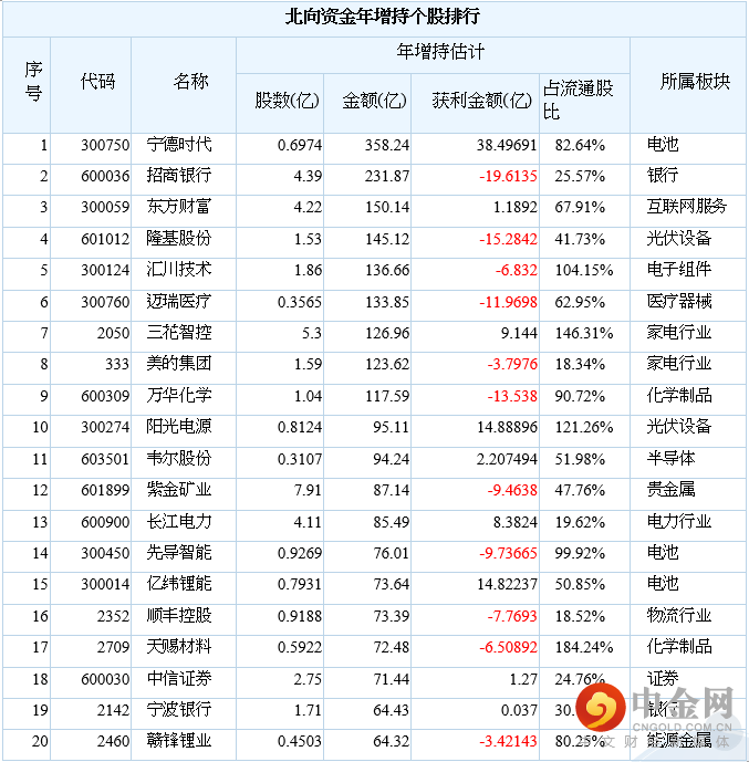 此外, 2021年有160只新纳入沪、深股通的股票被北向资金加仓。其中,中国能建、中国通号、三峡能源2021年分别被加仓1.54亿股、8311.13万股、6638.31万股。