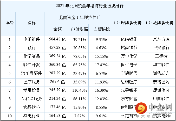 (一). 2021年可说是环球股市表现分化较大的一年,若以一些主要经济体计算,欧美地区以及个别新兴市场股指录得不俗的升幅,但部分如中港股市及巴西股市等则录得下跌,形成鲜明对比。以环球各类资产计算,全年表现最佳的是商品,升38.48%;其次是成熟市场股市,升22.38%;然后是美国高收益债券,全年总回报为5.28%;现金或等值的总回报为0.05%;最后,美国高评级债券及新兴市场股市则分别录得1.04%及2.47%的跌幅。(二). 回顾一些国际性主要农产品,明显看到基本上全部都上升,升幅最少的CME活牛期货价格也在2021年上升14.8%。升幅最高的为ICE咖啡,其次为ICE棉花,然后是玉米,分别上升65.9%、49.6%及34.8%。值得注意的是国内的生猪期货价格在今年反复下跌。(三). 至于能源价格是推动2021年整体商品市场上升的主要推手。去年纽约期油及布兰特期油价格分别大幅上升55.0%及50.2%,纽约期油盘中高位见85.41美元/桶。然而NYM汽油及ICE煤炭升幅更高,分别64.3%及66.8%。尽管NYM天然气全年升幅仅26.9%,但年中价格曾一度升至6.56美元/百万英热的水平,升幅逾120%,惟其后大幅回吐至年底的3.73美元,升幅收窄。在投机盘的参与下,国内动力煤期货价格一度急升接近2,000元人民币/吨的水平,高位1982元人民币。(四). 回顾过去30年纽约期油表现,油价的波幅周期一般会维持数年。参考纽油于2008年升至历史高位147.27美元/桶,其后在2009年跌至盘中最低32.4美元,2011年回升至114.83美元,2016年再度跌至26.05美元,然后在2018年升至76.90美元,2020年则发生了不可预料的事情,就是纽油跌穿了零水平,得最低负40.32美元的盘中低位,最新在2021年回升至85.41美元。(五). 主要因为需求大幅上升,加上疫情加剧了供应链问题,各类基本金属均在2021年录得显著的升幅,其中LME锡的升幅最高,全年升91.2%。至于工业较常使用的LME铝及铜的的升幅分别是41.8%及25.5%。然而,铝价于第三季的升幅增速再进一步加快,惟在第四季回吐了涨幅。有别于基本金属,贵金属在2021年录得下跌。当中包括现货金、银、铂金及钯金4种贵金属分别下跌3.6%、11.7%、9.6%及22.2%。(六). 扭转过去多年情况,2021年大部分债券类别均录得负的总回报,意思是收了票息后仍未能抵偿债价下跌的本金损失。以总回报计,去年就只有美国、泛欧及环球高收益债能录得正回报,因为一般高评级债及一些政府国债的利率敏感度较高,受到市场息率上升的影响较大,而美国高评级债及美国国债指数均在去年录得负1%至2.3%不等的负总回报。值得一提的是亚洲高收益债,作为高收益债类别,但今年表现却与欧美高收益债走势背驰。受内房违约事件影响,中国高收益债及亚洲高收益债指数主要在去年第二季起大幅下跌。全年计,亚洲高收益债指数跌12.6%,中国高收益债跌26.3%。(七). 汇市方面,在去年市场预期美国联储局将大机会缩减买债计划的背景下,美元兑其他外币表现强势,美汇指数全年升6.37%。在8只主要货币中,只有加拿大元兑美元上升。日圆兑美元跌幅最大,全年下跌10.25%,然后是欧元、澳元及纽元,分别兑美元跌6.93%、5.6%及4.98%。美元强势,大部分亚洲新兴市场货币同样兑美元下跌,仅新台币与人民币兑美元上升。泰铢及韩圜兑美元的跌幅较大,全年分别累跌9.52%及8.39%。三. 2021年北向资金回顾 2021年北向资金累计净流入4321.69亿元,创年度净流入新高。其中沪股通资金净流入1937.27亿元,深股通资金净流入2384.42亿元。2021年北向资金对电力设备、电子、银行行业加仓金额居前;对1165只股票持股数增加,其中对宁德时代加仓金额最大。北向资金已经是A股市场主要的资金来源之一。整体来看,2021年北向资金减持消费股,布局新能源赛道,体现出其在行业配置方面的偏好。展望2022年,北向资金继续增配A股成为市场共识。具体来看, 2021年12月北向资金净流入889.92亿元,创月度净流入历史新高;2021年12月6日至12月12日单周净流入488.34亿元,创周度净流入历史新高;2021年5月25日净流入217.23亿元,创单日净流入历史新高。北向资金2021年各月均呈现为净流入,其中4月、5月和12月净流入金额超过500亿元。从北向资金持股情况来看,截至2021年末,北向资金持仓市值为2.76万亿元,2021年北向资金持仓市值增加4208亿元,结合北向资金2021年净流入4321.69亿元计算,浮亏约114亿元。