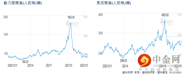 有关能源方面的回顾,国内的煤价也值得分享。国内的能源主要依赖燃煤发电,但2021年受到燃煤供应短缺问题影响,导致了限电事件。而在投机盘的参与下,国内动力煤期货价格一度急升接近2000元人民币/吨的水平,高位1982元人民币。其后政府高调表示击投机性买卖盘并作出相应措施,在投机资金退却下,价格回归基本面,并在年底时回落至与年初时相若的水平(图.15)。