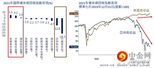 图.21及22 2021年普遍债券类别下跌 亚洲高收益债受内房违约事件影响