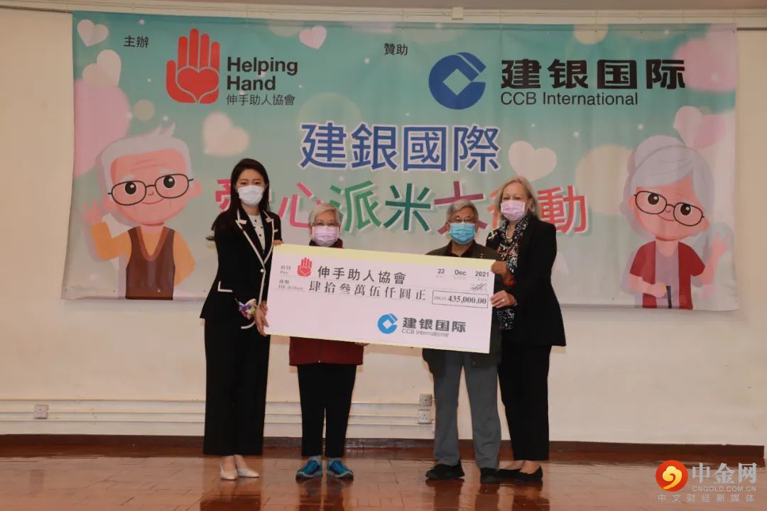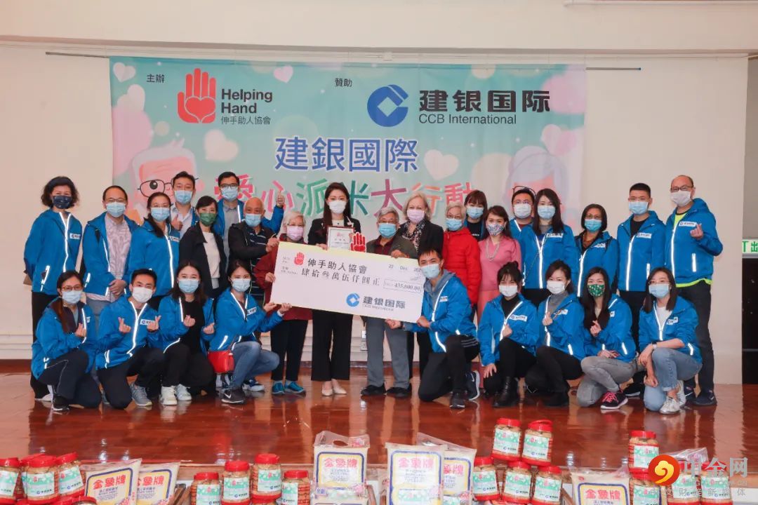 12月22日,建银国际开展“爱心派米大行动”,组织义工队深入社区,为将军澳宝林邨贫困长者派发米粮,帮助弱势社群共度时艰。同时,建银国际亦向香港本地慈善机构伸手助人协会旗下老人之家和护老院捐赠善款,用于购置保健器材和改善院舍条件,支持协会护老工作,帮助照顾长者。
