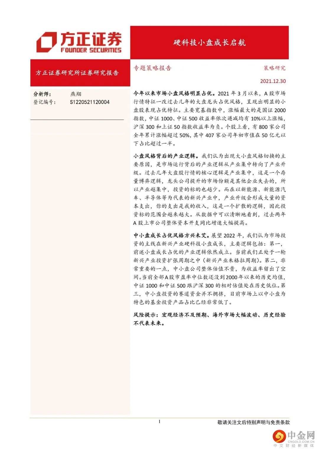 本文来自方正证券研究所于2022年1月2日发布的报告《硬科技小盘成长启航》,欲了解具体内容,请阅读报告原文。