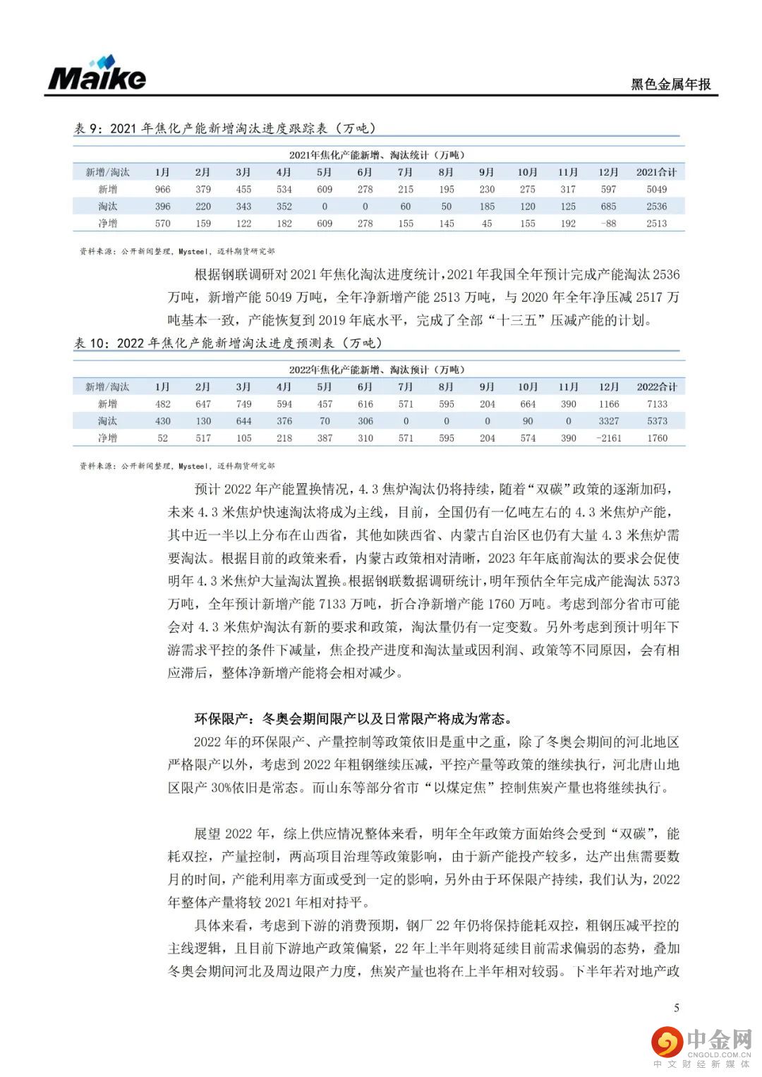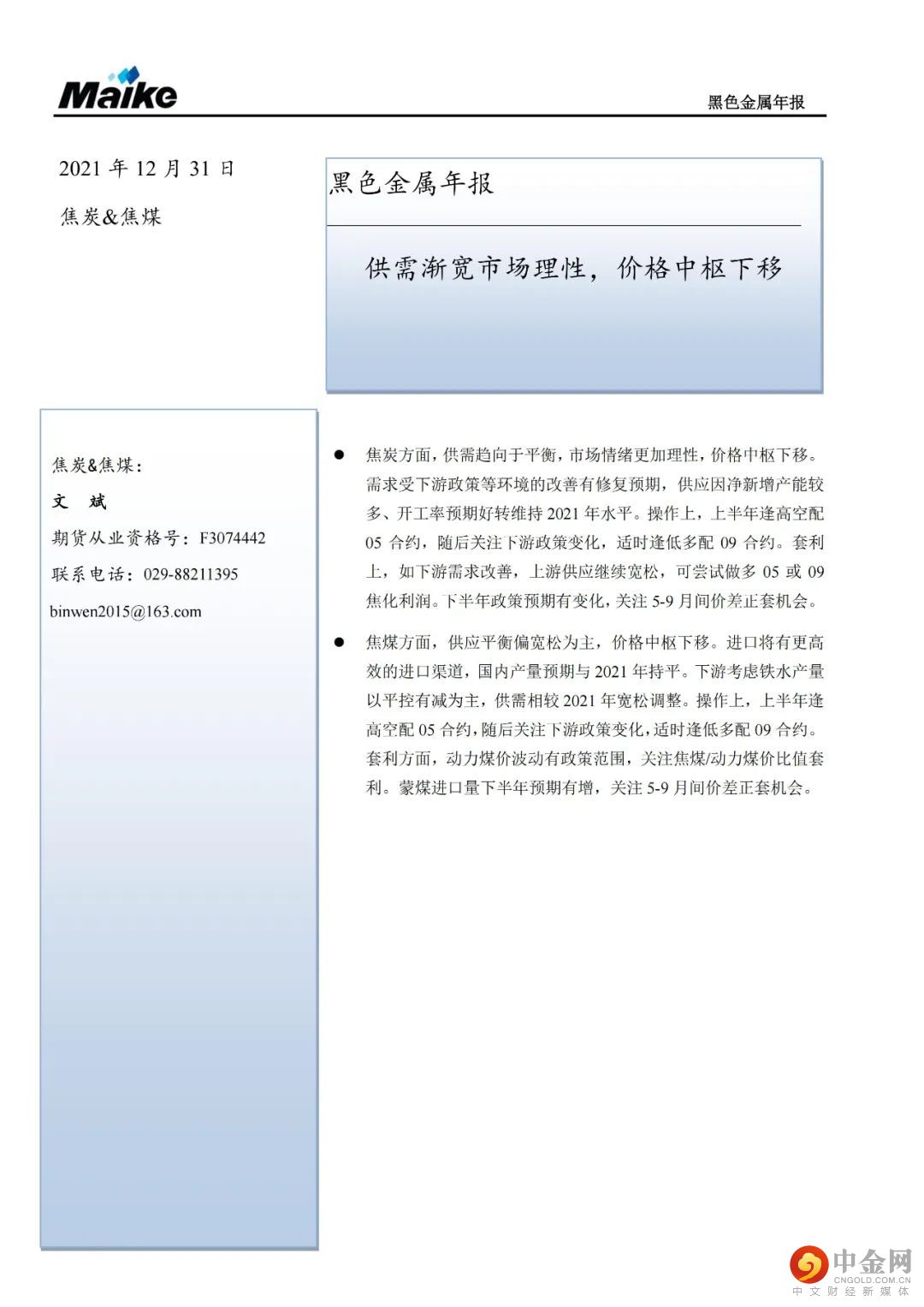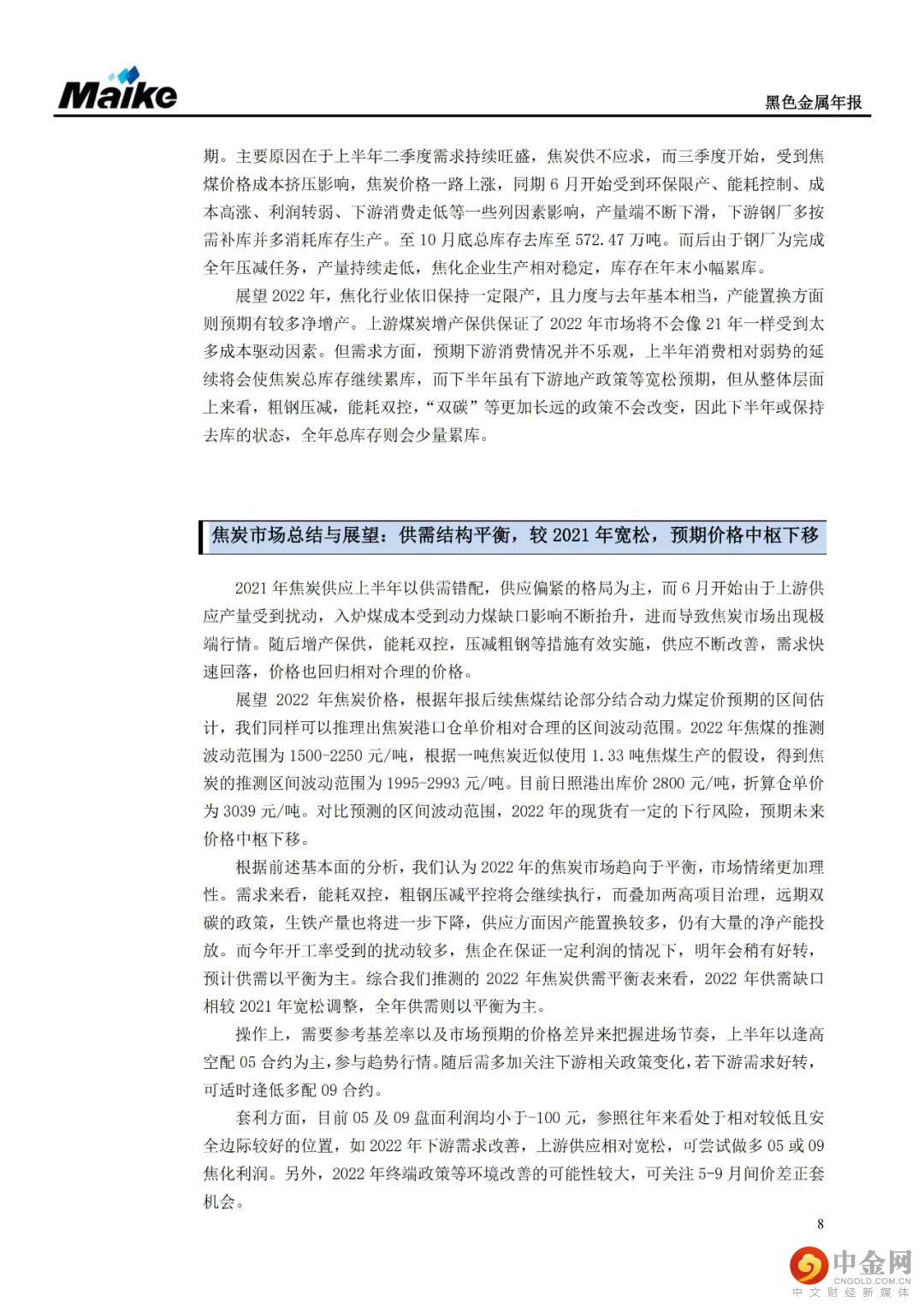 【迈科期货2022焦炭焦煤年报】供需渐宽市场理性,价格中枢下移