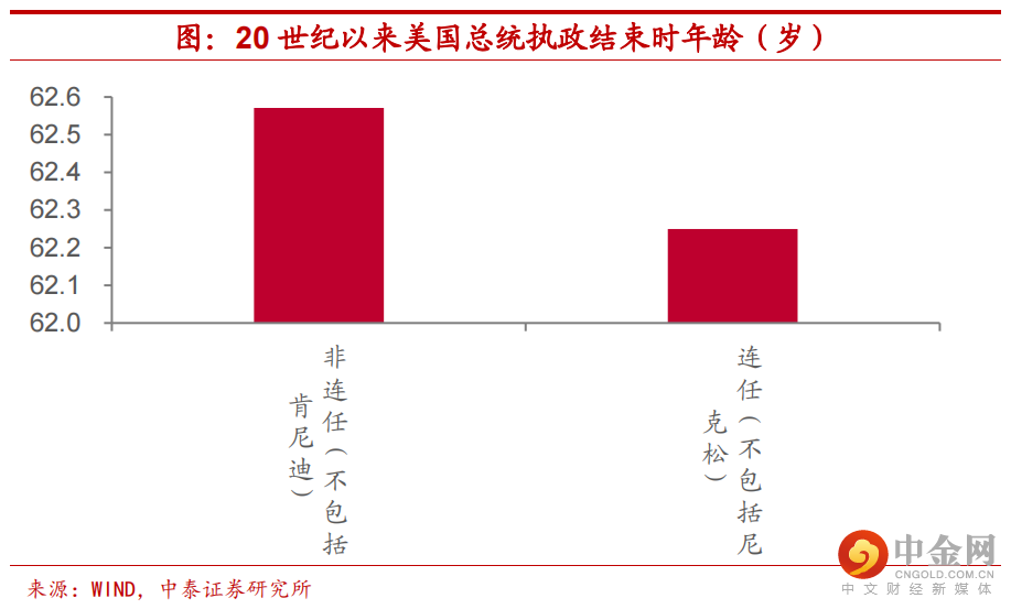 中期选举同样重要。今年全球多个经济体将举行重要选举,如法国、韩国和菲律宾都将确定新总统的人选,而其中备受关注的,无疑当属美国的中期选举。虽然这是在总统任期间举行的国会选举,可能看起来不如总统大选那般“热闹”。但事实上,中期选举是两党对于国会控制权的重新划分,其重要性同样不容忽视。从现有的国会格局来看,民主党相较共和党占据少许优势,而一旦共和党在中期选举中“翻盘”,则拜登总统的执政将面临更多掣肘。中期选举对于现任总统而言,类似于一场“期中考试”,而我们预计,今年的中期选举结果,对于民主党而言可能并不乐观,共和党或将卷土重来,在国会中占得优势。拜登连任概率偏低。从年龄上来说,我们认为,拜登连任下届总统的希望较为渺茫。一方面,拜登上任本身已经取代特朗普成为美国当选时年龄最大的总统,而如果拜登能够连任下届总统并执政至任期结束,则年龄应已超过85岁,将再创美国总统卸任时年龄的记录。且不论身体健康状况的因素,即便在其它大国的历史上,如此年龄卸任的最高领导人也极为少见。作为年龄最大的前苏联最高领导人,勃列日涅夫结束执政时也没有超过78岁,英国结束执政时年龄最大的首相丘吉尔也仅80岁出头,或许法国的贝当[1]和德国的阿登纳可以与此比肩,但两者执政背景均较为特殊。另一方面,从20世纪以来的美国总统选举结果来看,年龄偏大的总统更难获得连任,美国连任总统(不包括尼克松)执政结束时的平均年龄仅有62.25岁,而非连任总统(不包括肯尼迪)执政结束时的平均年龄约为62.57岁,高于连任总统的水平。如果拜登连任概率偏低,则中期选举结果很可能会对此提前反映。