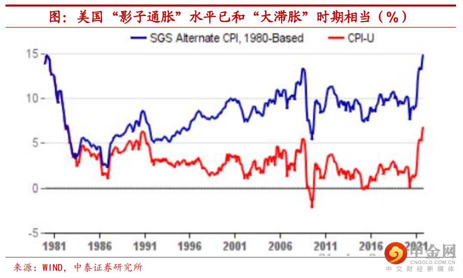 美国通胀显著低估,水平和“大滞胀”时期相当。不过,即便全球疫情短期难以消散,但经济环境和疫情刚刚爆发时已经有了显著不同,海外特别是美国政策收紧的风险日益上升。2021年以来,美国通胀水平持续走高,11月CPI同比增速已接近7%,这一数字看起来和美国“大滞胀”时期接近15%的CPI同比增速相去甚远,但事实上,这是因为对于CPI的统计和计算方法已经发生了较大变化,如果按照1980年的方法,重新计算当前的通胀水平,即所谓“影子通胀”,则当前CPI同比增速已经和“大滞胀”时期的顶峰基本相当。如此之高的通胀水平使得美联储被迫加快货币收紧的步伐。