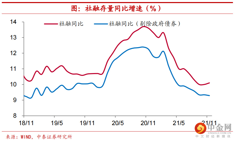 财政发力或在节奏前置和结构优化。2021年财政政策的积极力度明显不及2020年水平,一方面,“多收少支”的情况贯穿全年,财政收入增速远高于年初确定的预算目标,而部分支出增速较目标尚有差距;另一方面,从节奏上来看,地方政府专项债发行偏晚,制约着年内支出的增长。在“政府降杠杆”的背景之下,2021年全年国债净融资额不足2.4万亿元,仅有中央财政预算赤字的85%左右。我们预计,2022年全年来看,财政政策整体力度同样难言积极,在可持续性的要求之下,财政发力应更多地体现在节奏前置和结构优化。