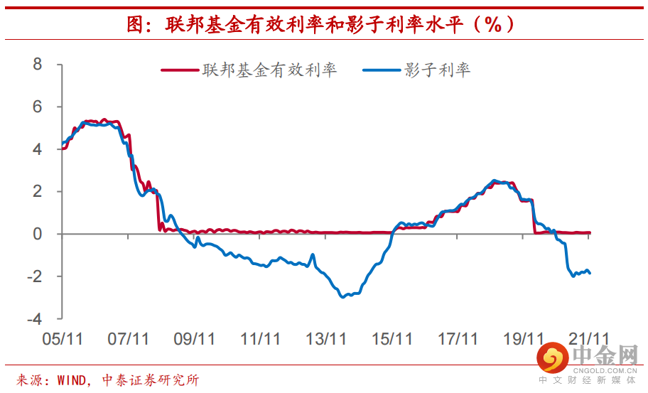 年内多次加息,风险值得警惕。2021年的最后一次议息会议上,美联储宣布加快缩减购债,而等到今年一季度购债结束,我们预计,加息也将很快被提上政策日程。根据2021年12月美联储公布的点阵图显示,与9月仅有9名委员给出2022年加息预期不同,18名委员均认为美联储将于2022年加息,12位委员认为2022年将加息至少3次,而联邦基金影子利率水平也已经触底回升,反映出货币政策取向上的变化。目前高企的通胀水平仅靠一到两次加息很难真正改变,和点阵图的情况一致,我们预计,今年年内美联储将有多次加息,流动性收紧的风险值得警惕。