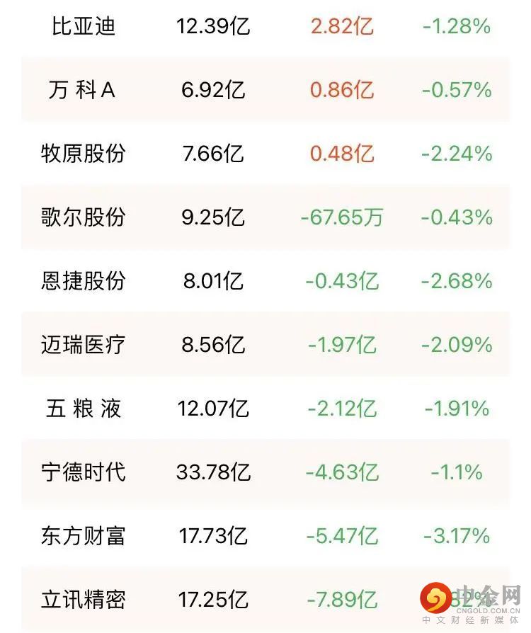 北向资金净卖出66.38亿元,净卖出额创近2个月新高,结束连续7日净买入。立讯精密、伊利股份、东方财富分别遭净卖出7.89亿元、7.39亿元、5.47亿元;比亚迪逆势获净买入2.82亿元。
