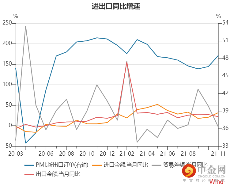 图2-5:进出口同比增速 单位:%