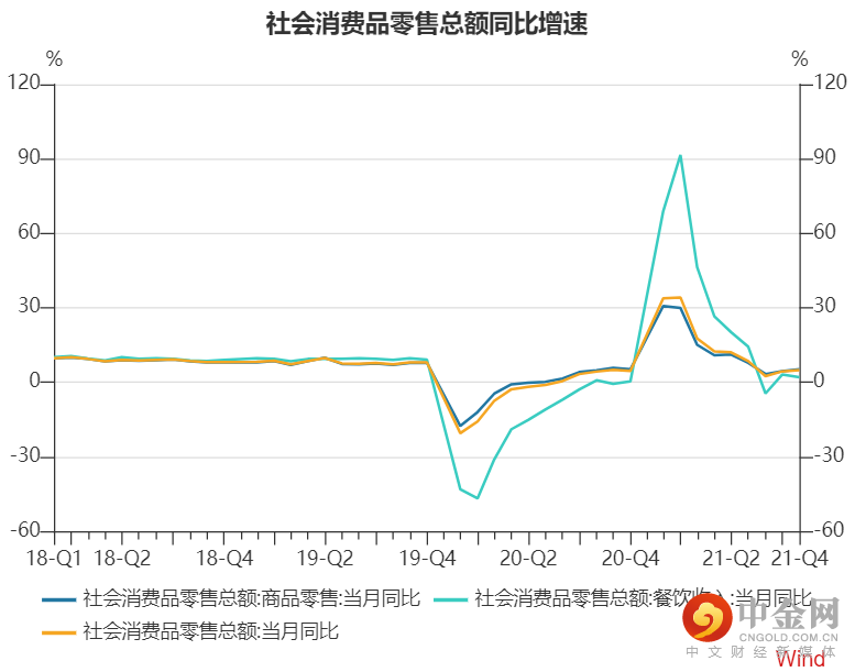 图2-3:社会消费品零售总额同比增速 单位:%