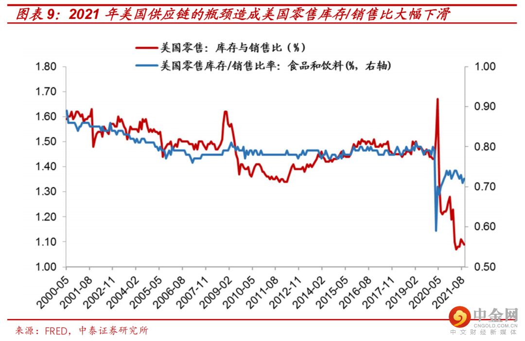 1)美国供应链:我们在2021年中预判:9月美国财政补贴暂停后,由于居民就业的惰性惯性,美国居民不会很快回到工作岗位这将拖累下半年美国经济,但同时,我们也指出,由于疫情前近半数美国百姓零储蓄和普遍借贷消费的现实,也使得最迟四季度后期后,美国居民将逐步回到工作岗位,这将带来美国供应链的修复和产成品补库存的需求;