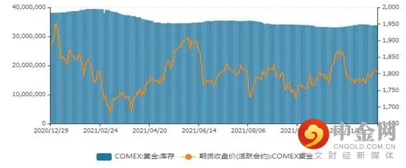 图3-2:COMEX黄金库存2021.1-2021.12(金衡盎司)