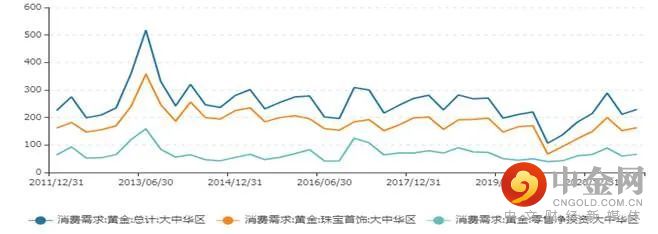 图2-4:大中华区黄金需求2011-2021(吨)