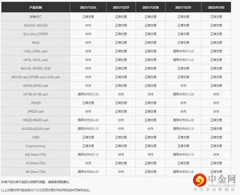 临近圣诞和新年假期,AETOS艾拓思祝您和家人节日愉快,同时也提醒您:注意公众假日期间的交易时间变化,合理安排投资计划。