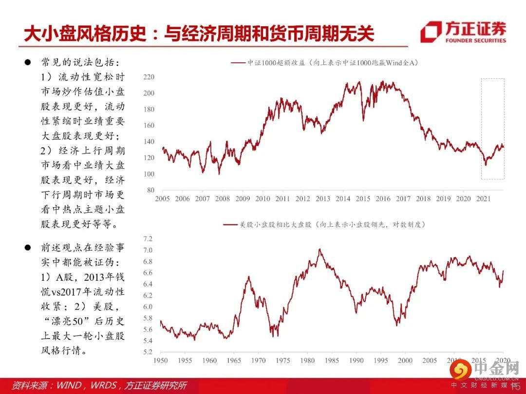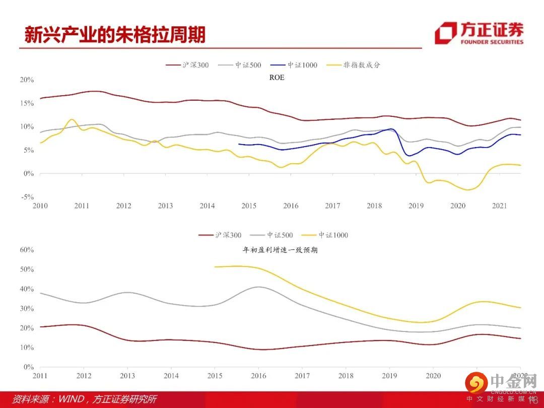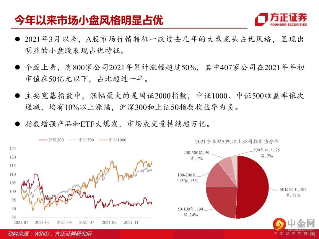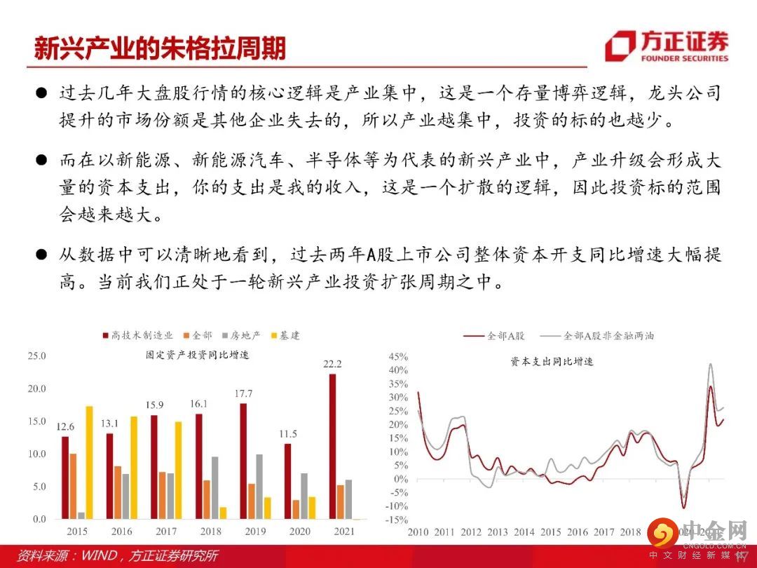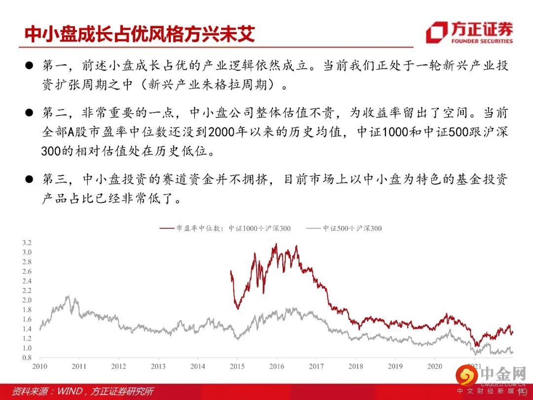 市场风格2022年重点关注小盘成长,当前中国新兴产业正处于一轮投资扩张周期(新兴产业朱格拉周期),投资逻辑从过去几年的产业集中转向产业升级,受益投资标的范围在扩散。