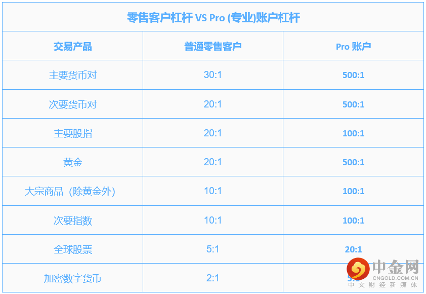 新的杠杆比率限制 — 该指令将限制零售客户的差价合约杠杆。新的杠杆限制为: